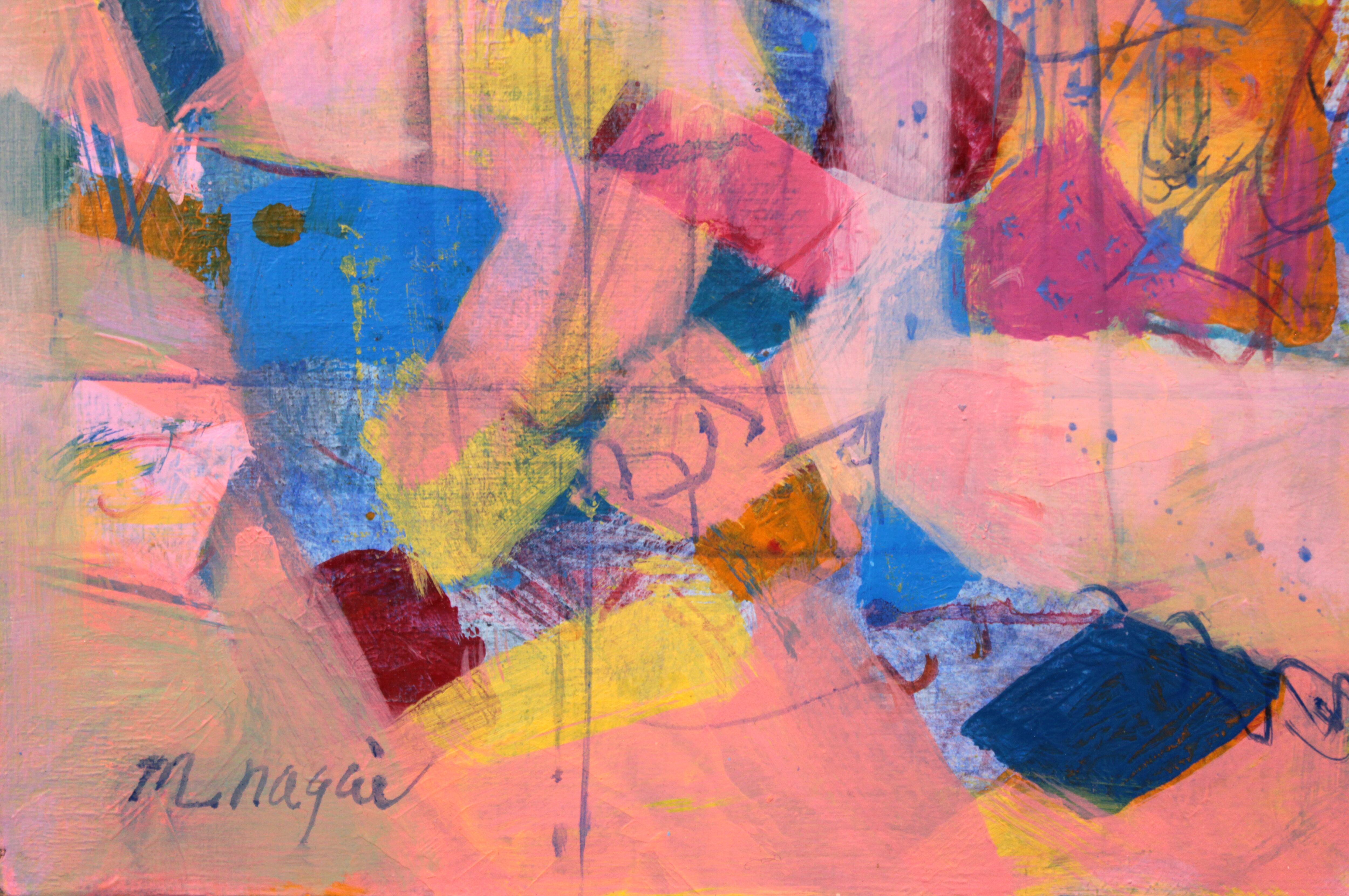 鮮やかな色彩が多幸感に満ちた躍動的なエネルギーを生み出し、幾何学的な形がリズミカルな調和を奏でています。朗らかで楽しい休日の空気を捉えた、心明るくなる作品です。