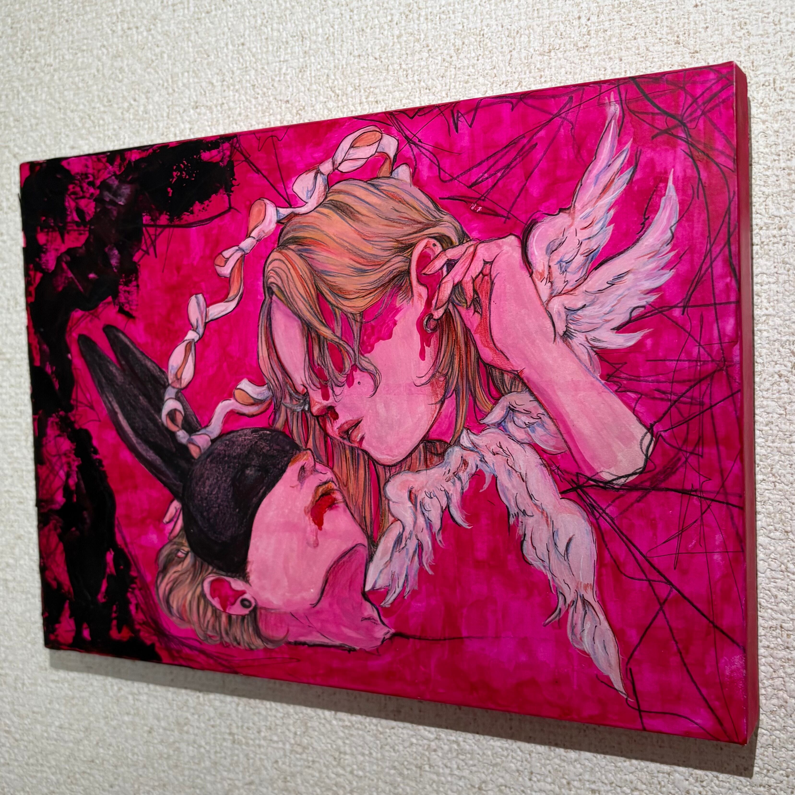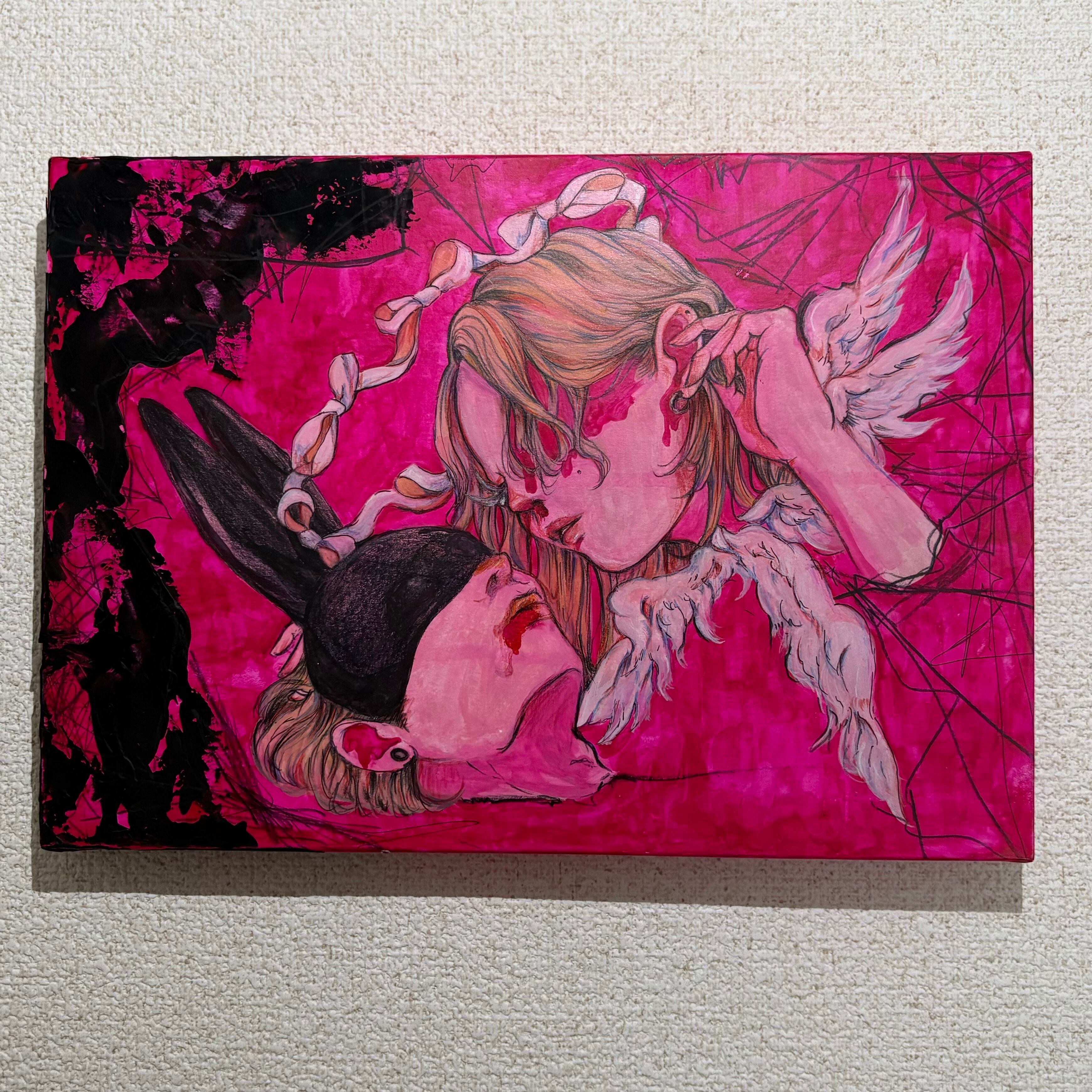 使用画材・水彩絵の具、アクリルガッシュ、色鉛筆、木製パネル